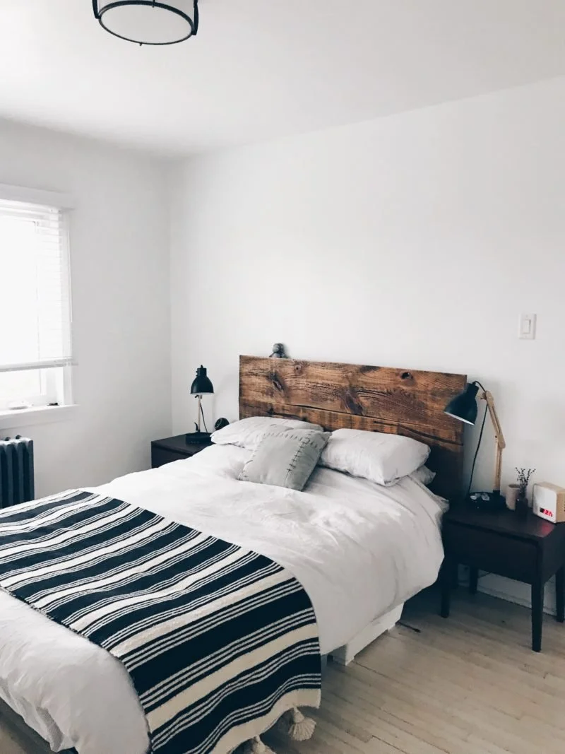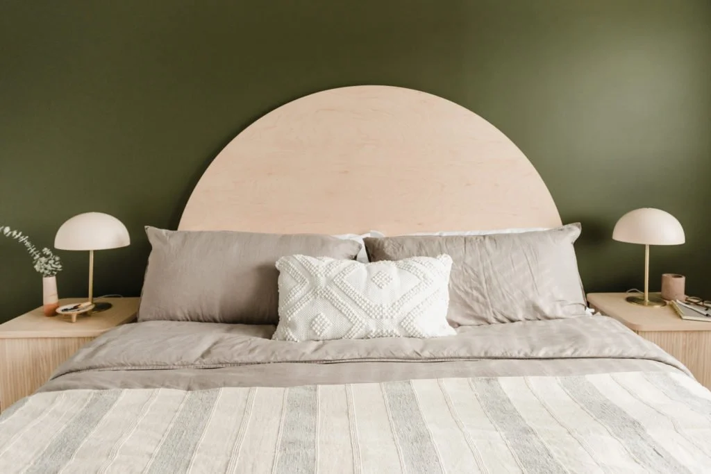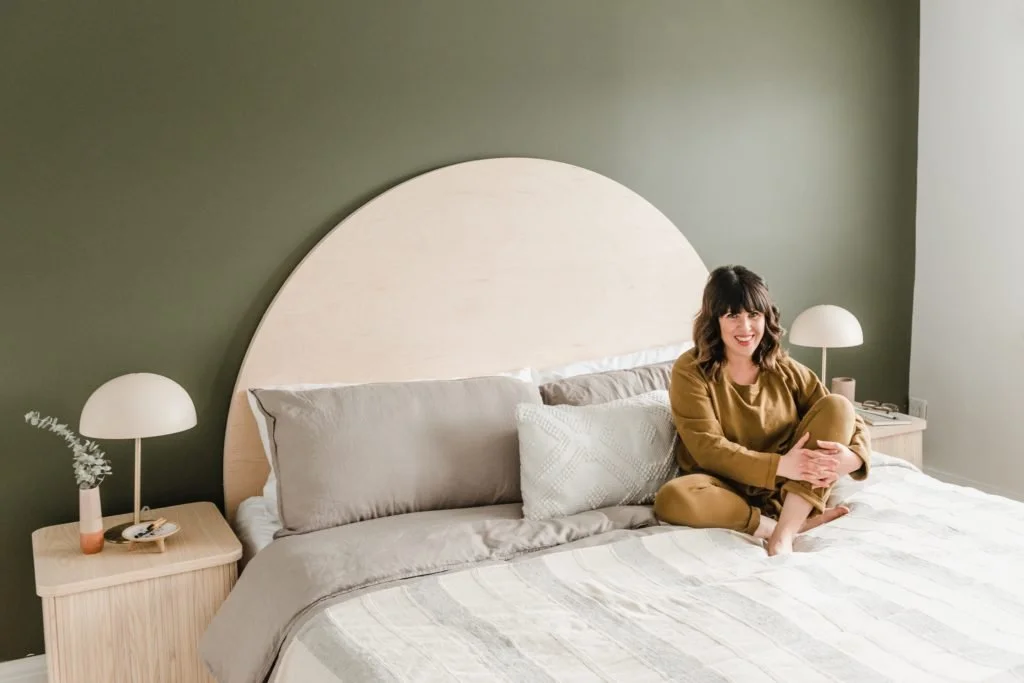 And can we talk about this custom headboard? *insert heart eye emoji* Chris made the headboard using 2 large sheets of plywood to give it some depth. We used an inexpensive piece of plywood for the backside and a maple plywood for the frontside. I literally could not be happier with the way it turned out!