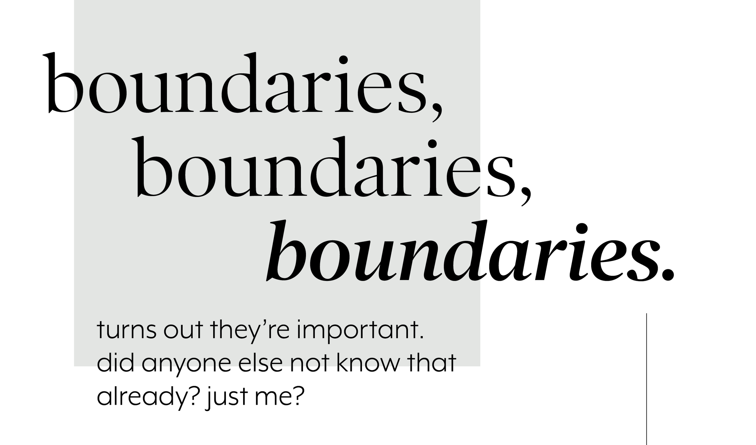 The need for boundaries – in all elements of life and work – has been coming up BIG TIME. It took a world pandemic to show me the beauty in boundary-setting (even if some have been set for us), and a good friend to guide me to do some deep thinking.